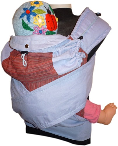 Состав 40 % лен 60 % хлопок. Широкие мягкие лямки с холлофайбером на плечах и спине мамы. Под ножками малыша - мягкие бортики.