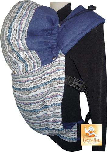 Состав 50 % лен 50 % хлопок. Мягкие лямки шириной 14 см, ширина стропы 25 мм. Нижняя лямка-стропа - сплошная, шириной 50 мм, максимальная длина 140 см. Удобно регулируемые пряжки, мягкие бортики для ножек малыша. На фото слинг с подголовником.