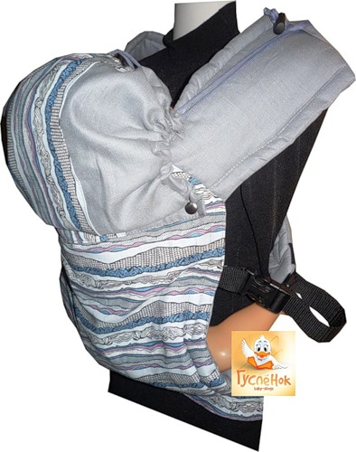 Состав 50 % лен 50 % хлопок. Мягкие лямки шириной 14 см, ширина стропы 25 мм. Нижняя лямка-стропа - сплошная, шириной 50 мм, максимальная длина 140 см. Удобно регулируемые пряжки, мягкие бортики для ножек малыша. На фото слинг с подголовником.