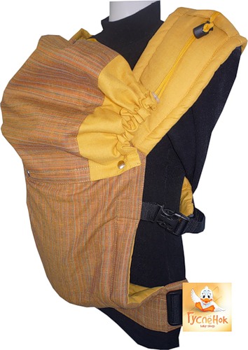 Состав 50 % лен 50 % хлопок. Мягкие лямки шириной 14 см, ширина стропы 25 мм. Нижняя лямка-стропа - сплошная, шириной 50 мм, максимальная длина 140 см. Удобно регулируемые пряжки, мягкие бортики для ножек малыша. На фото слинг с подголовником.